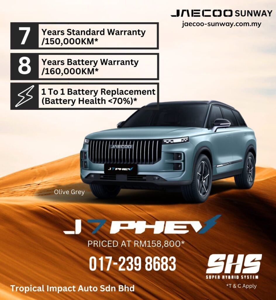 Jaecoo — a brand that’s redefining what it means to drive a premium SUV. At our Bukit Jalil showroom, you’ll find more than just cars; you’ll discover innovation, power, and elegance seamlessly combined. Whether it’s the bold Jaecoo J7, the intelligent and eco-friendly J7 PHEV, or the futuristic Omoda C9, each model is crafted to deliver style, performance, and advanced technology that elevate every journey. If you’re ready to upgrade your lifestyle, it starts right here.